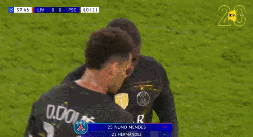 第37分钟,门德斯伤退,卢卡斯-埃尔南德斯替补上场